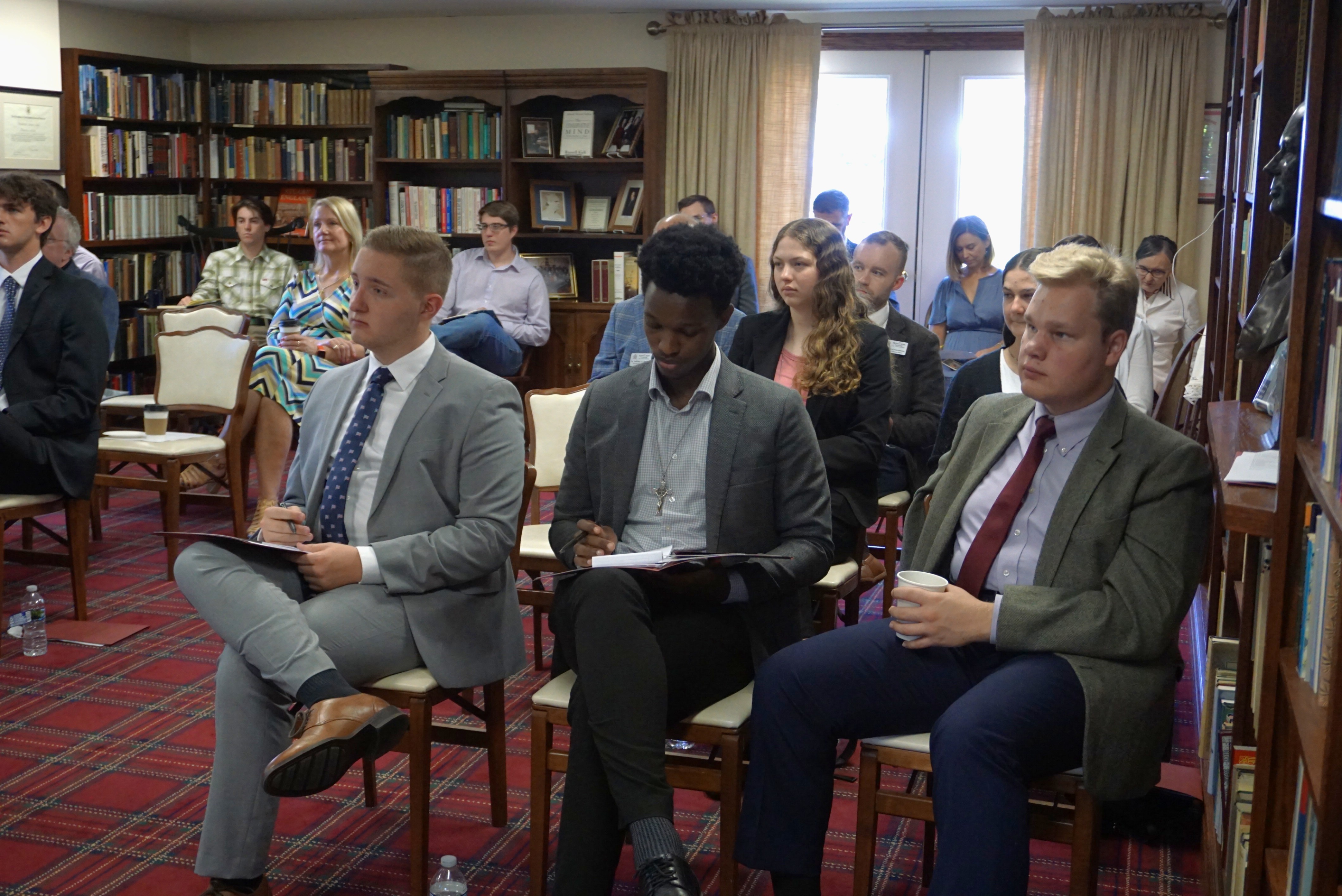The day began with Dr. Trepanier’s introduction to the conservative intellectual movement in America, which led into his talk, “Russell Kirk on Liberal and Character Education.” This talk connected Kirk’s conservatism to the broader tradition of the liberal arts. Dr. Streeter then followed with a talk entitled “Conservatism and Community: Civil Society and the Value of Moral Habits,” bringing the insights of modern social science into a compelling case for the importance of intermediary institutions—families, schools, churches, and voluntary associations—in fostering human flourishing. Taken together, their insights offered interns both a practical roadmap and an intellectual foundation for understanding modern conservative thought.