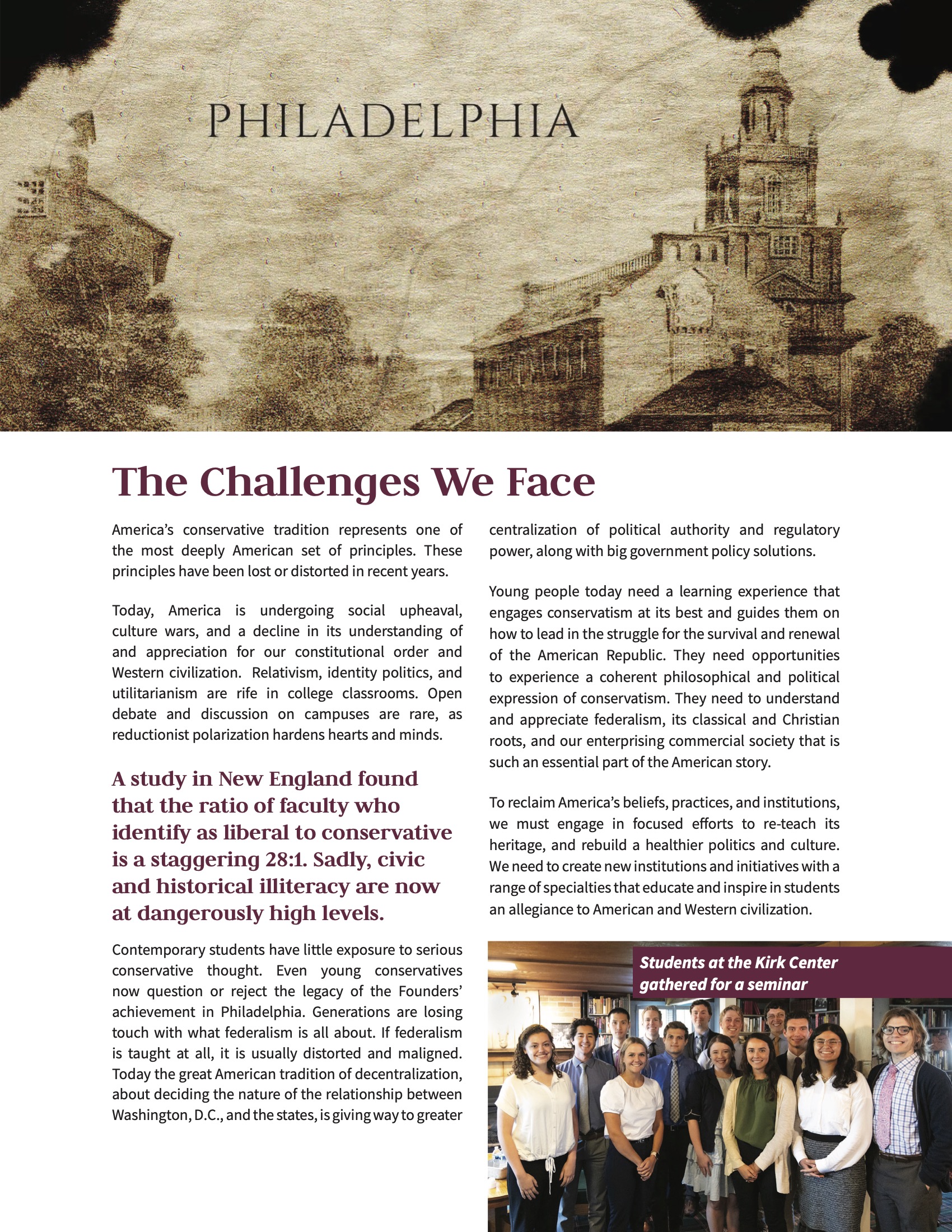 “Regardless of whether you are a Kirkian or even a conservative, there is no better place to gain a deeper understanding of American conservatism than at the Kirk Center.”